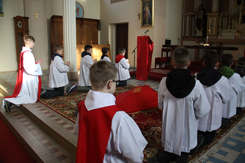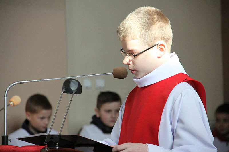 Celebrans i asysta wchodzą w ciszy. Przed ołtarzem przez chwilę leżą krzyżem, a po modlitwie wstępnej czytane jest proroctwo o Cierpiącym Słudze Jahwe i fragment Listu do Hebrajczyków. Następnie czyta się lub śpiewa, zwykle z podziałem na role, opis Męki Pańskiej według św. Jana.